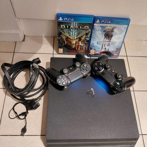 Playstation 4 Pro spelkonsol i svart färg. Ingen handkontroll .