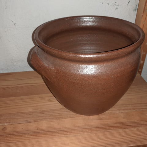 Set bestående av 3 glaserade vinröda krukor i olika storlekar med rund form. Krukorna är röda och har en blank yta. De kan användas för planteringar både inomhus och utomhus. Mellersta krukan har lite vita skav, se bild, förövrigt fina. Alla för 150kr.