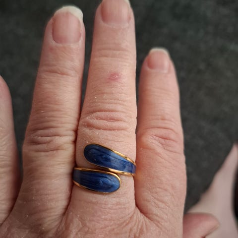 Snygg ställbar guldfärgad ring i färgen Aegen Blue från svenska märket Ioaku säljs för 225 kr. Ringen är aldrig använd utan enbart provad så den är i nyskick. Ringen finns fortfarande att köpa hos Ioaku och kostar för närvarande 349 kr där. Hämtas i Staffanstorp och skickas inte. Hund finns i hemmet.