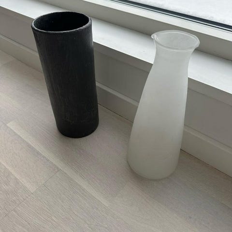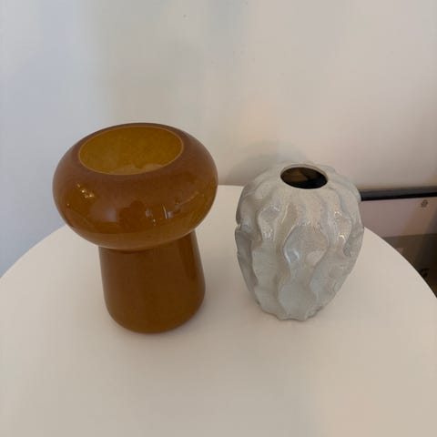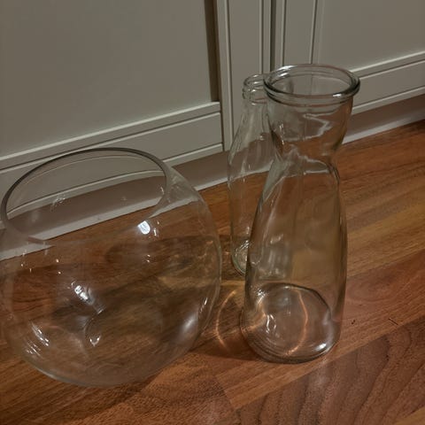 Två vaser i glas med etsat fågelmotiv, 2 olika storlekar