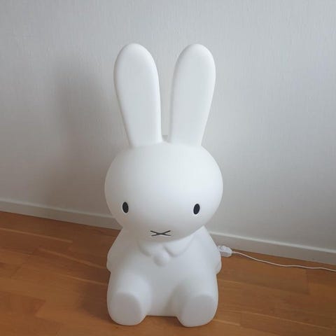 Den här stora Miffy-lampan från Mr Maria är en häftig figurlampa att ha i barnrummet, eller i något av hemmets andra rum. Lampan är tillverkad i vit, tålig och hållbar plast och har ett varmt, mjukt sken som ger en harmonisk och mysig stämning. Lampan kommer med en USB-kabel med adapter, och kan med en touchdimmer justeras i sex olika steg, inklusive nightmode, för att ge ett behagligt ljus anpassat efter omgivningen. Nightmode är ett mycket svagt sken som kan lämnas på över natten.