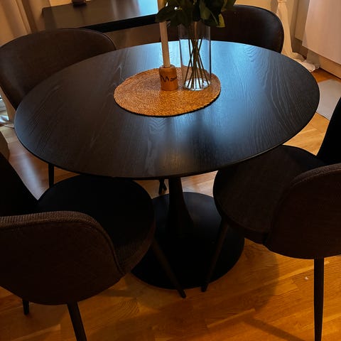 The chairs are TONSTAD from IKEA, the table is from Jysk
