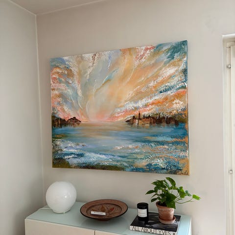 Oljemålning med måtten 80x100 cm. Färgen är ljusrosa/rosa. Fint skick,