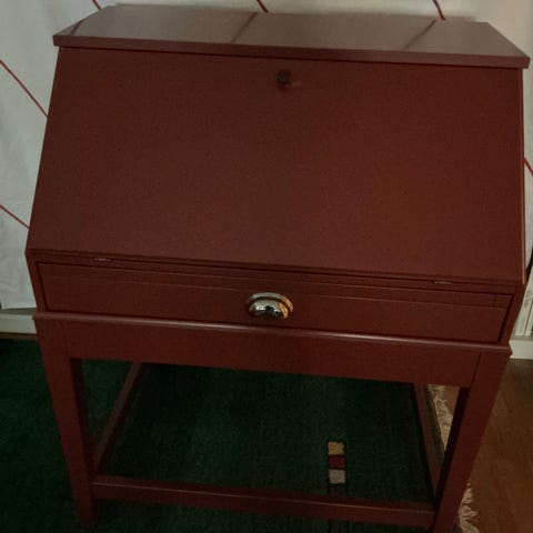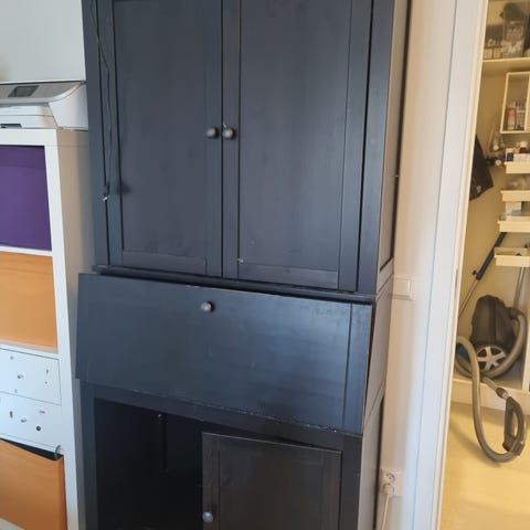IKEA sekretär med över- och underskåp samt en nedfällbar skrivyta. Möbeln har två övre dörrar, en nedfällbar skrivyta med lås och två nedre dörrar. Passar för förvaring och skrivarbete i hem eller kontor. Observera skruvhål på övre dörren bild 4. Finns på Lilla Essingen där vi har hiss.