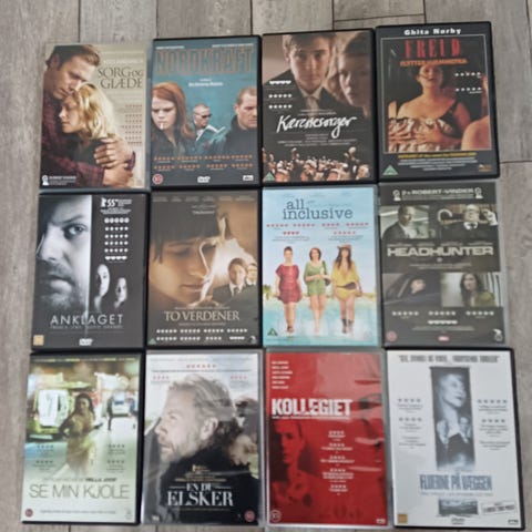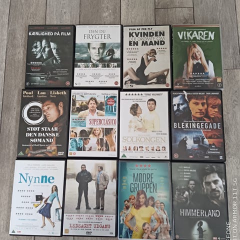 Samling av danska DVD-filmer med olika titlar och genrer. De klassiska filmerna är i standard DVD-format och ingår i en varierad samling för filmintresserade.