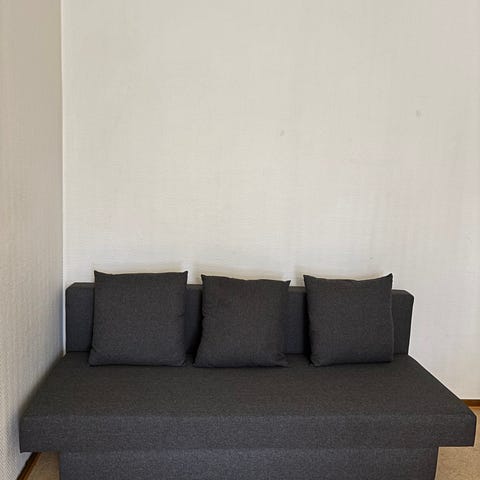 Utfällt bäddmått ca 130x190. Smidig och enkel att fälla ut och in, och med förvaring i underdelen.