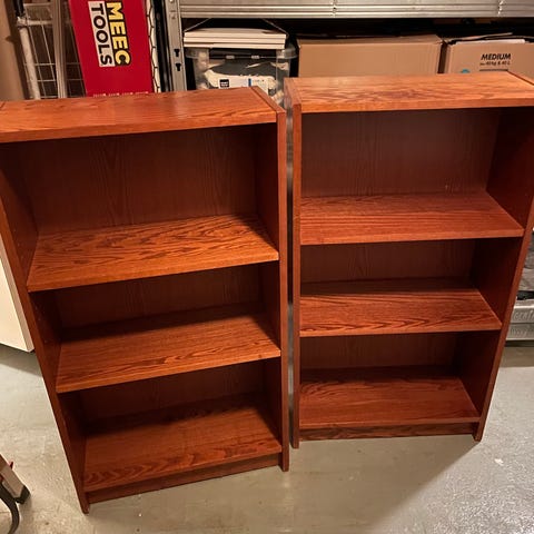 Hyllorna är i helt ok skick men synligt använda och med vissa skador. Säljer dem som ett paket eller var för sig. Den större kostar 500 kr och den mindre 400 kr. Pris för båda 800 kr.