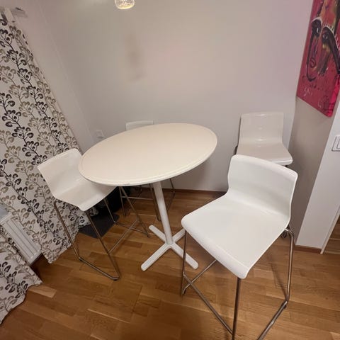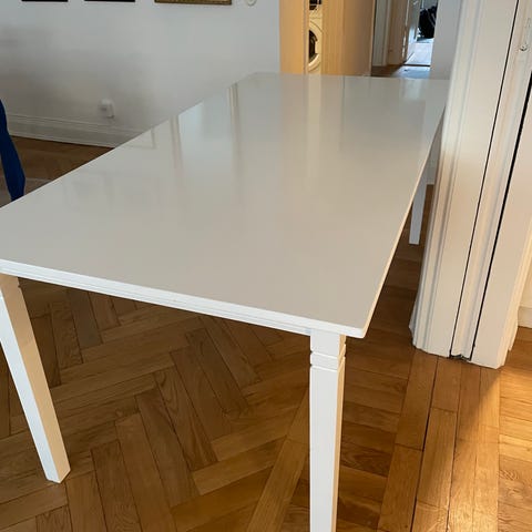Matbord i grått med vita ben.