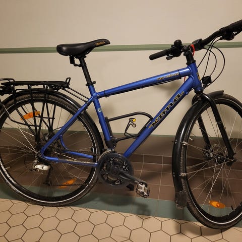 Hej alla, nu är det dags! Vänligen, läs hela annonsen så att du förstår vad det handlar om, det här är inte "bara en cykel". Jag blev nyligen klar med helrestaureringen/helrenoveringen av denna fantastiska Retro-cykel från 1997, som jag är oerhört nöjd med, den är i extremt bra skick nu. Cykeln är en Crescent Trekking med Shimano Nexus 7-växlad navväxel, 60- ram och 28" hjul. Jag har haft isär hela cykeln och bytt ut alla rörliga slitdelar, navväxeln fungerade inte riktigt som den skulle och just de delarna som inte var ok gick inte att få tag på, så det sitter ett nytt växelnav som bara är drygt 5 månader gammalt och det fungerar perfekt. Bromsarna är nya och riktigt bra, drivpaket är nytt, så även växelväljaren, drivpaketet, osv osv. Cykeln är i nyskick, fast bättre faktiskt, jag får så mycket beröm för den, vart jag än åker. Jag hade tänkt att lacka ramen, men jag kunde bara inte få tag på alla dekaler, så jag tänkte fixa de små "skönhetsfläckar" som finns med min airbrusch, som jag tyvärr inte har hittat, än. De här fläckarna är små, man måste stå nära för att se dem, men det är det enda som behöver göras om den ska bli i "Mint Condition". Jag har använt cykeln till allt, har ingen bil längre så jag cyklar någon mil varje dag både för att göra ärenden och för tränings skull. Min "recension" av denna cykel är 5 av 5 eller 10 av 10, den är fantastisk, utan tvekan den bästa cykel jag någonsin ägt! Framförallt Shimanos Nexus 7-växel- nav som är briljant, om man t.ex trampar uppför på 2- ans växel och när det sedan går utför kan jag rulla och vrida på reglaget och förbereda vilken växel jag vill utan att trampa, t.ex 5, och när det planar ut så är det bara att trampa på med rätt växel. Man behöver inte trampa för att "klättra", flytta kedjan, som man måste med kassettväxel- systemen. Det är så mjukt, ljudlöst och så perfekt. När det gäller däck så har jag bara valt testvinnare, så nu sitter vinterdäcken på som är Schwalbe Winter Plus 240 dubb och du får även med bra sommardäck. Som ni ser så har jag renoverat den utifrån mina preferenser och behov, så som jag vill ha den och det handlar om ergonomi och lite modernare nya material, lösningar som fungerar bättre än för drygt 30 år sedan, t.ex sadel, styre, handtag, trampor etc. Jag har såklart sparat de originaldelar som jag bytt ut, om man vill återställa cykeln till originalskick, så de följer med cykeln. Om det inte vore för en viktig sak så hade jag aldrig sålt cykeln, men eftersom jag även använder den som ett dagligt träningsredskap så har funktionaliteten blivit mer viktig. Jag har "vuxit" ur cykeln och behöver nu både en högre och en lägre växel, alltså 9 växlar totalt och det går tyvärr inte att bygga om navväxeln, det går heller inte att bara dreva om för då blir alla växlar antingen trögare eller lättare, så jag måste byta till kassettväxlar. Det finns så mycket mer att säga och visa, men framförallt måste cykeln upplevas och provcyklas för att förstå, som Crescent själva skriver i sin säljbroschyr; "Provtur ger mersmak" och det kan jag garantera. I början skrev jag att "den är i nyskick, fast bättre" och det står jag för. Det finns inte någonting som skramlar eller låter, den är knäpp tyst, varför jag många gånger skrämmer fotgängare för de hör mig inte. Om du skulle höra något störande ljud när du är här och provcyklar så lovar jag att du får pruta lite. Tänk efter vad du har för
