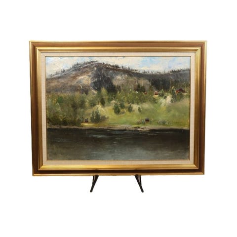 Duken är grov och naturfärgad linnecanvas med tydlig vävstruktur, vilket ger målningen karaktär, djup och ett genuint äldre uttryck.Denna typ av duk var vanlig under mitten av 1900-talet.