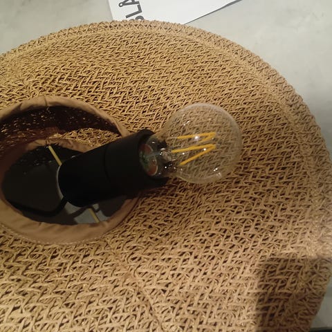 I fint skick, mysig gulaktig frös glas och matt svart i ram( det går och måla om ef önskat färg) bara med en spray.