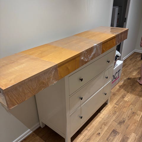 Stomme från IKEA och fronter, ben och knoppar från Pretty pegs eller Superfront (minns inte riktigt)