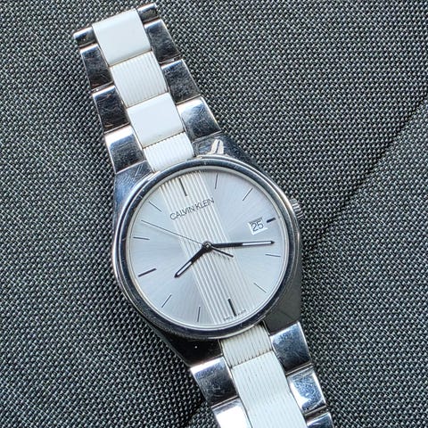 Stilren klocka med silverfärgat mesh-armband och svart urtavla. Klockan har en minimalistisk design med romerska siffror och kan användas både av dam och herr.