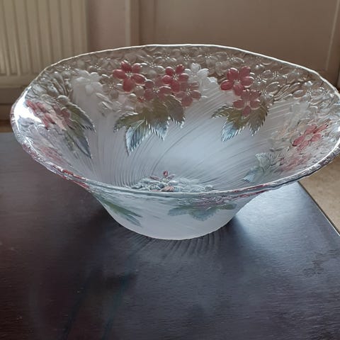 Orrefors Maja glasskål med handmålat blommönster design Eva Englund