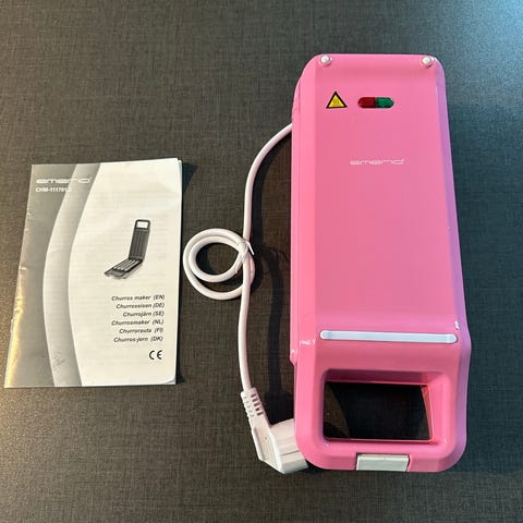 Emerio våffeljärn i rosa färg. Elapparat för att tillaga våfflor. Belgiska våffelstavar.