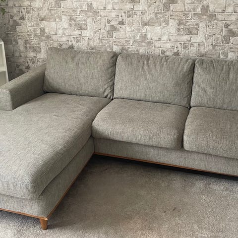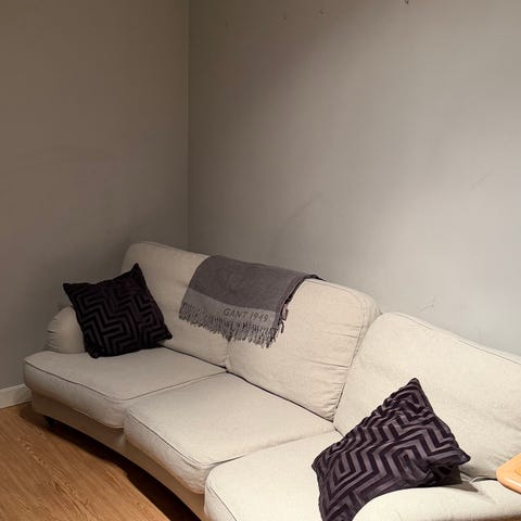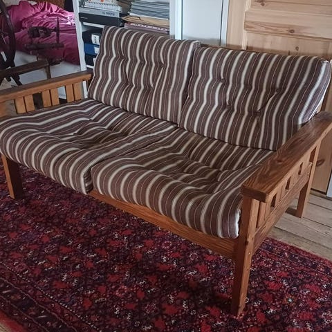 Soffa med randigt tyg i brunt och svart