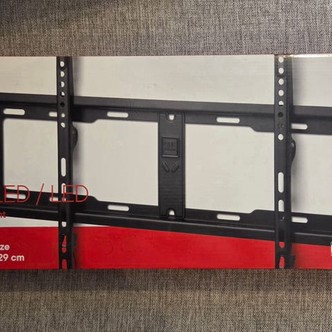 Deltaco väggfäste för TV med justerbar arm i svart färg. Fästet är utformat för att montera TV:n på väggen och ger möjlighet till flexibel placering genom dess ledade arm.