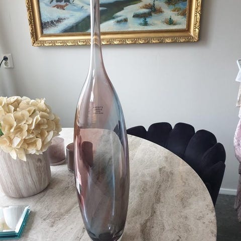 Konstglas champagnekupa i klarglas med dekor. Märkt med etikett och signerad, se sista bilden. Höjd ca 30 cm.