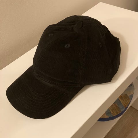 Keps i vitt med perforerat mönster som skapar ett dekorativt utseende. Kepsen har justerbar rem bak för anpassad passform.