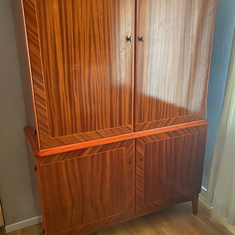 Jättefint äldre skåp med gedigen träinredning i toppskick. Säljes på grund av platsbrist. Skåpet säljs från befintlig plats och måste bäras ner fyra trappor. Är ganska tungt.