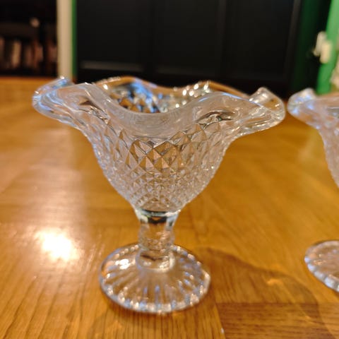 Glass Bohemia, bohemiskt glas, pressglas, mjölkskål, sockerskål, gräddkanna, vintage glas, retro 50-tal, 60-tal