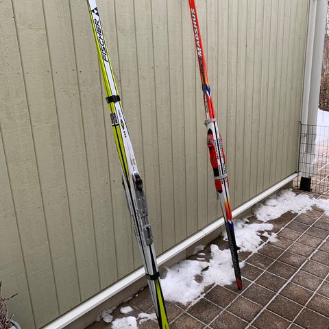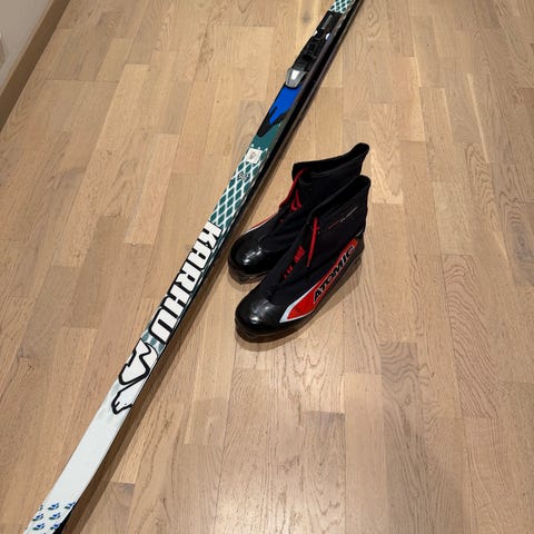 SNS bindning. Pjäxor ingår har två par , en Salomon Skate pjäxa , storlek 41 och Salomon Classic , storlek 40 , vikt på åkaren 68-72 kg