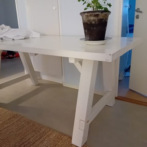 Egentillverkat träbord. Bordet väger omkring 15kg så bärhjälp får medtas.