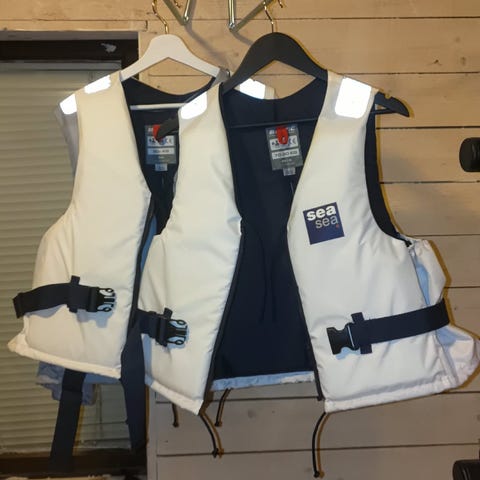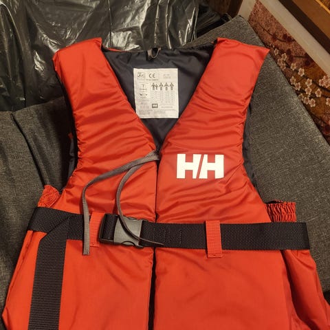 Här säljer jag min sparsamt använda flytväst från Helly Hansen.