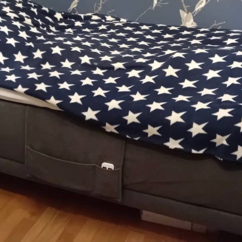 Säljer två ställbara sängar i storlek 90x200 cm. Sängarna är i mycket fint skick och har en stilren, knappad sänggavel i mörkgrått tyg som ger sovrummet ett elegant och ombonat intryck.
