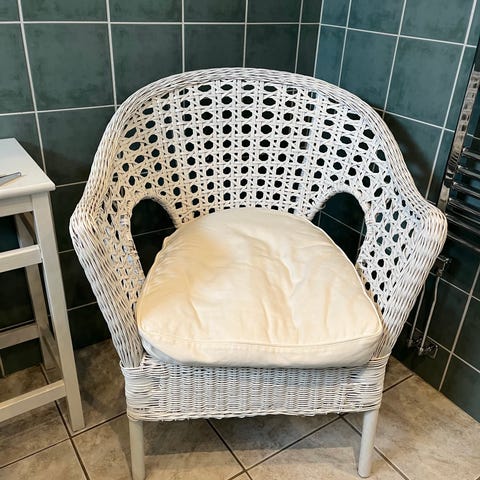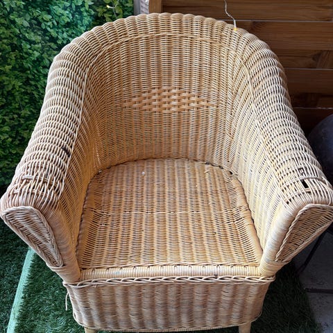 En rejäl fåtölj i rotting i mycket bra skick, den har endast stått inomhus.