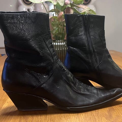 Svart skinnboots med sympatexmebran för torra fötter. Sympatex både andas och stänger ute väta. Greppvänlig sula och klack, anpassad till vårt nordiska klimat. Vattentät dragkedja med bakomliggande textil i sympatexmembran för att hålla vätan borta. Dekorativ dragkedja på utsidan, funktionszip på insidan. Skinnfoder samt uttagbar innersula.