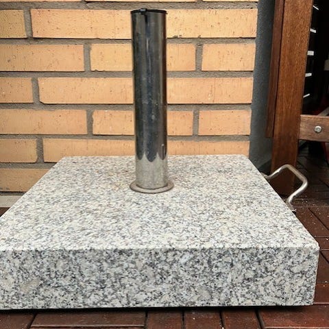 Granitsockel med metallrör för parasoll