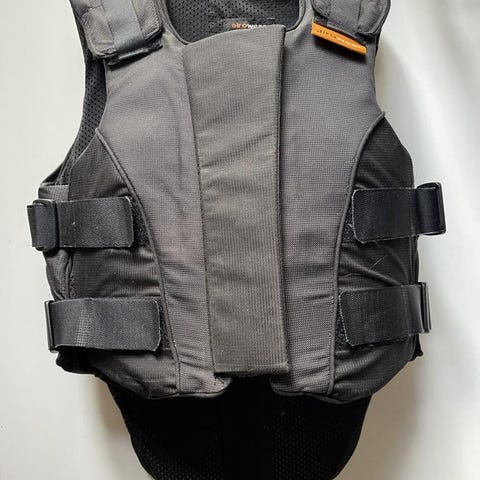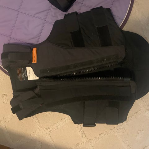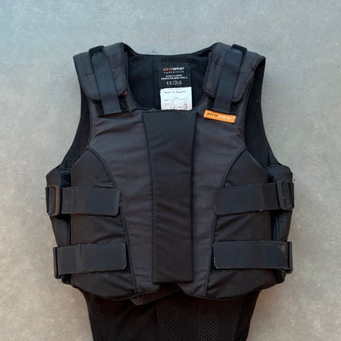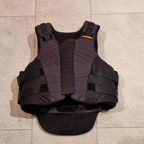 Säkerhetsväst / ridväst från Airowear i storlek T1 Regular. Den är hel men använd. Går att ställa om omkretsen och längd i axeln!