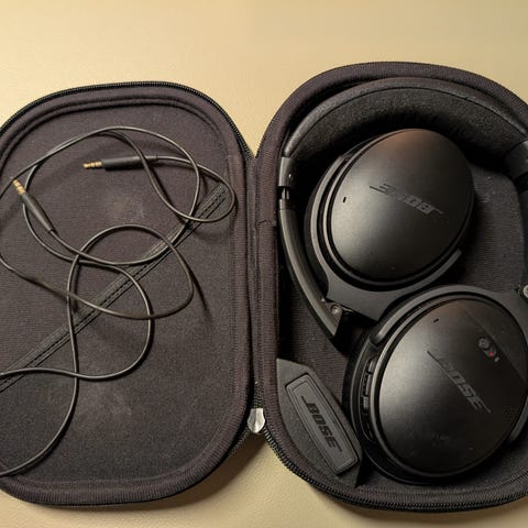 Bose QuietComfort 25 hörlurar i svart färg. över-ear-hörlurar med brusreducering. Levereras med hårt skyddsfodral. Nya kuddar kostar 85kr, ena kudden har släppt lite enligt bilder!