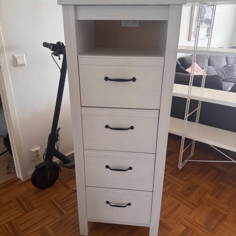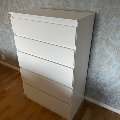 IKEA byrå i vitt utförande med flera lådor för förvaring. Passar för olika rum och användningsområden.