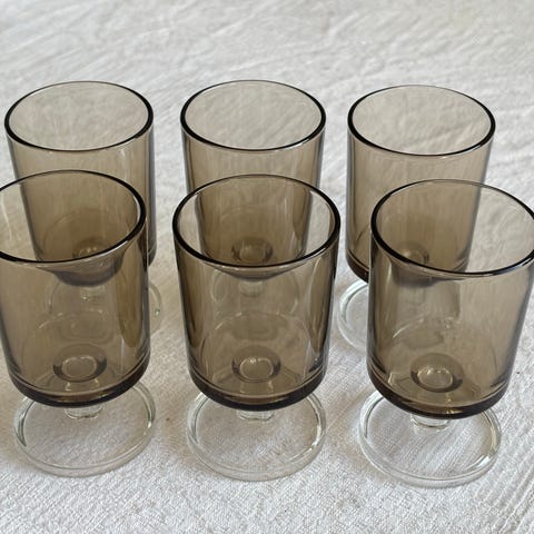 Från 1970-tal, 4 st rökfärgiga whiskeyglas, Denby Milnor, Sweden.