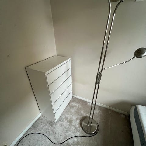 Spegeln har ett märke på garderoben. 100kr för byrån och garderoben är gratis.