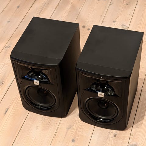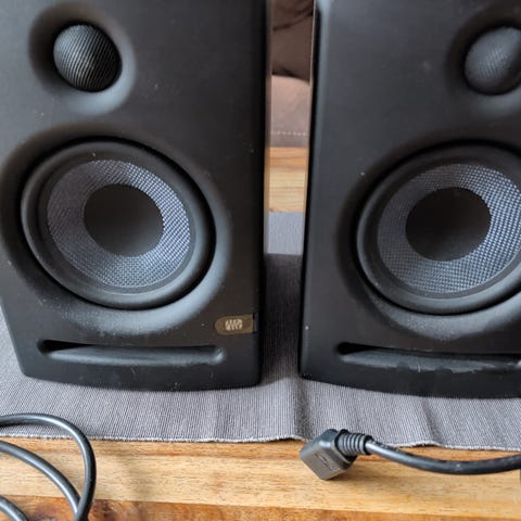 Två små aktiva studiomonitorer med klart ljud - bra för mindre hemmastudio.