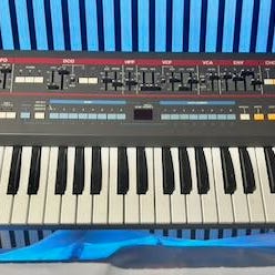 Säljer en Roland Jupiter-6 i mycket fint visuellt skick. Panel, reglage och tangenter är ovanligt välbevarade för sin ålder och ger ett mycket gott helhetsintryck. Ett riktigt snyggt exemplar.