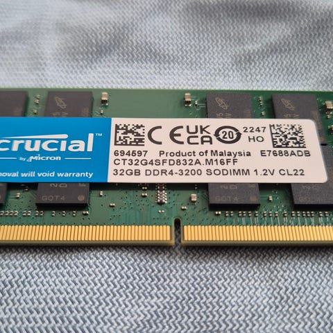Minnena är av typen DDR4 med en hastighet på 3200MHz och kapacitet på 8 GB per modul vilket blir 32GB totalt.