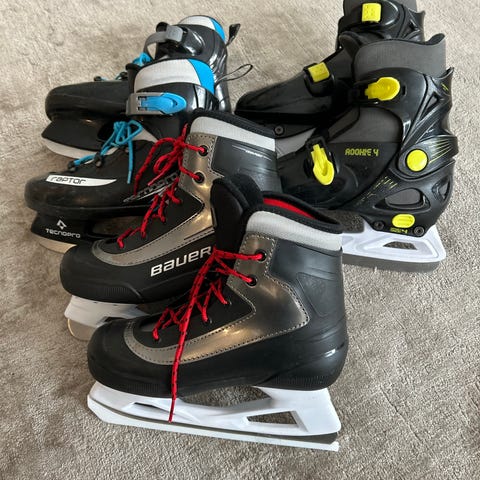 Ishockeyskridskor för barn i storlek 36. Upplevs små så skulle nog hellre säga passar 34-35. De är utrustade med snörning för justerbar passform och har en design som ger stöd och stabilitet vid skridskoåkning.