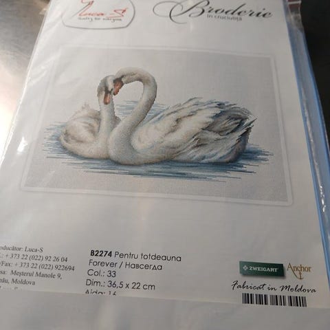 Brodyrpaket innehållande ett mönster med motiv av en blomkorg, broderigarn i flera färger samt en tavelram.