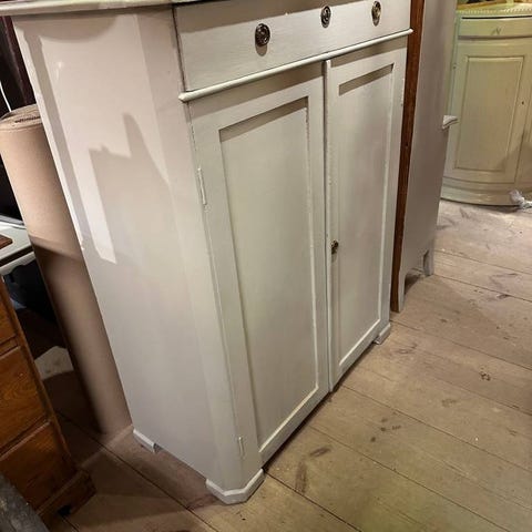 Skantic Radio skänk i trä med mönstrad träyta och dekorativa detaljer. Möbeln har ett centralt avsnitt med tygklädd front och två sidofack med dörrar. Passar för förvaring och som dekorativ möbel i hemmet.