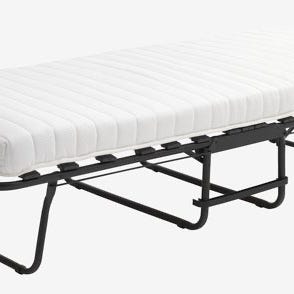Hej! Två st ihopfällbara gästsängar i metall med tillhörande madrasser. Sängarna fjädrar ganska mycket och madrasserna är rätt tunna så bäst för lättare personer.