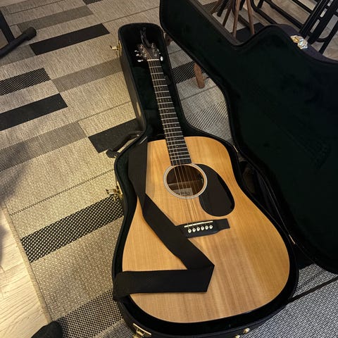 Martin & Co LX1E semiakustisk Gitarr i mycket fint skick. Det här är den klassiska "Little Martin"-modellen med Solid Sitka-gran i locket, vilket ger ett imponerande ljud för sin storlek. Utrustad med Fishman Sonitone pickup för inkoppling till förstärkare eller PA. Gitarren säljes då den tyvärr inte kommer till användning så mycket som den förtjänar.