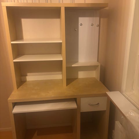 Snyggt, smidigt och tar lite plats i rummet. Perfekt med förvaring i lådor så att man kan förvara pennor och annat som annars blir clutter på skrivbordet. En planka följer med där man kan kan ställa till exempel en dataskärm, vilket jag har använt det för. Även ett hål långt bak för snygg cable management.