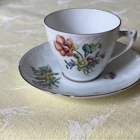 Porslinservis från 1890. Servis för 9 personer bestående av kaffekanna, koppar med fat, sockerskål och gräddkanna. Servisen har en blå och vit färg med dekorativa mönster "blå mås".
