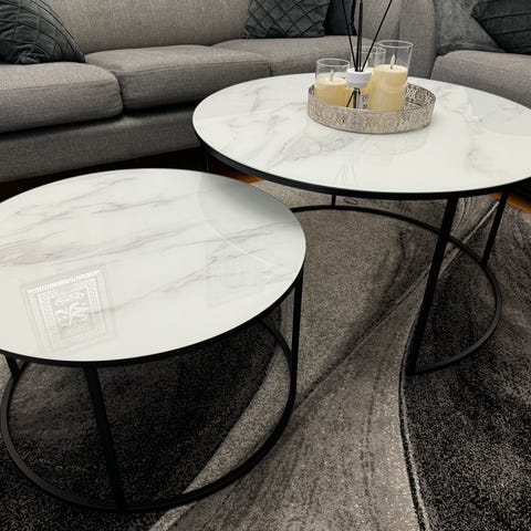 Soffbord i marmorlook med mässingsram – stilrent & stabilt