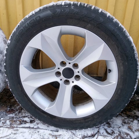 1. BMW M-Sport fälgar som tidigare suttit på en BMW X3 men passar såklart på fler. Det sitter Pirelli Pzero däck på med ungefär 3 mm mönster djup på samtliga. Inga sprickor och är aldrig svetsade. Ett av framdäckens gummi har en skada men håller luft. Specs: 245/45R19 och bak 275/40R19. 72,5 mm i navmått. ET 48 på bakfälgarna och ET 38 på fram. Bultmönster 5x120 Pris 3800 kr