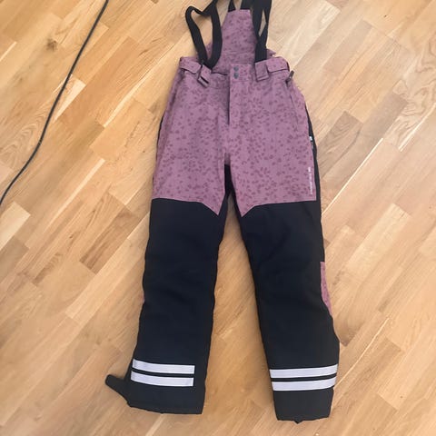 Överdragsbyxor: svarta med hängslen strl junior 14 164 cm x-tra slitstarka i rumpan. Gråa HH strl 152/2 utan hängslen men spänns åt i midjan. Svarta Five strl 40 med hängslen kan spännas i midjan. Blåa med hängslen Five strl M spänns i midjan.